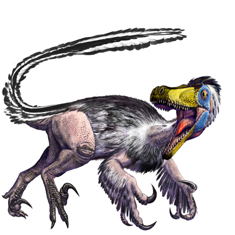 Velociraptor. Fully arm-feathered as the newly discovered of ulna bumps for quill attachment demonstrate.