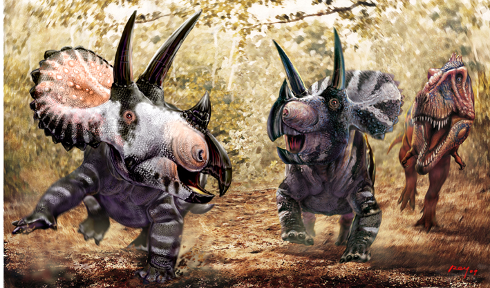 I have been studying the debate on the locomotion of Triceratops for a long time. I have also studied several mounted skeletons and this is what I finally managed to come with as compromise… a peculiar stance indeed. This illustration is old …I still hadn’t updated it with the new information regarding the skin… of both T. rex and Triceratops!.. I might do it in the near future. I think there are always new surprises every minute these days regarding Palaeontology. But I wanted to share for the time being because it just records the evolution on my own restoration of these animals. A renovation should always be in the cards these days, both in style and substance.