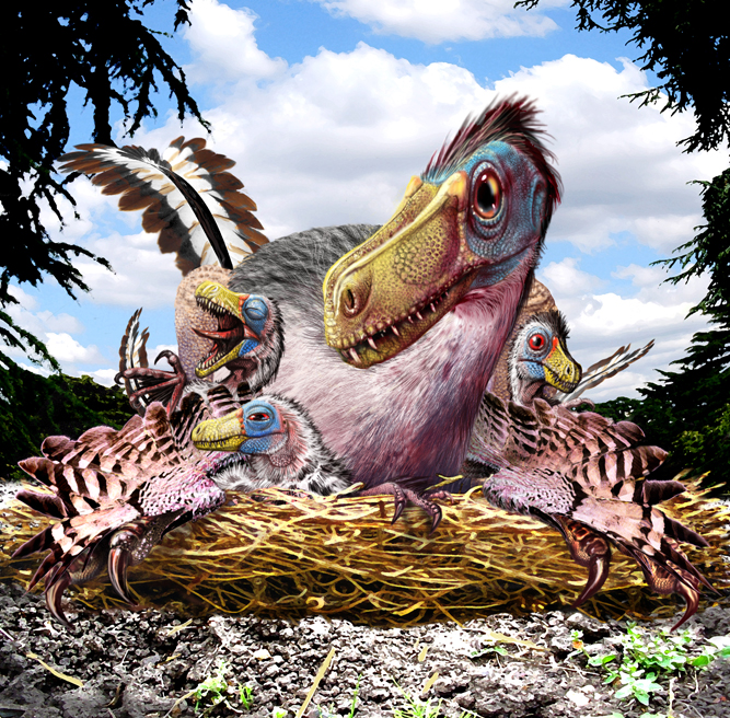 This Velociraptor nesting family was intended for the cover of “Dino Babies!” until someone else decided differently. I personally thought this would have been a much better idea… It is obviously tongue in cheek attempt to draw attention to the closeness of dinosaurs and birds (a division that is mostly artificial, base on time scale more than anything else…)