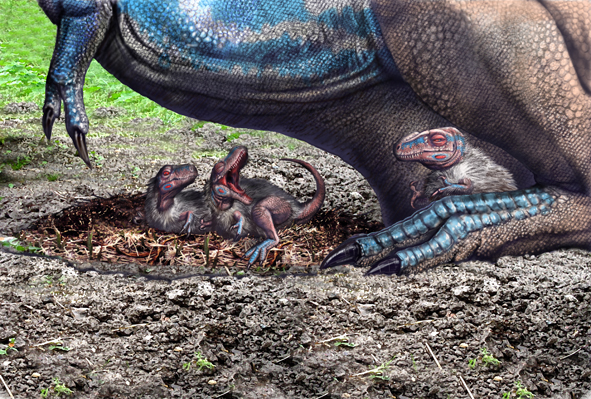 Also from “Dino Babies”. I was one of the first artists to depict feathered T. rex offspring back in the late nineties. We have gone a long way and this artwork will soon have to be modified… it seems that the adult T. rex might have been feathered too!