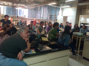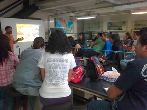 Yes, it was that time of the year again: I have always found the Mexican student audiences to be the hungriest and keenest regrading new dinosaur research and on top of that, they have always liked my stuff. So what better than taking the opportunity this year again to give two mini-seminars? Thanks to my old friend and comrade of many SVP field trips in the past René Hernández Rivera (foremost palaeontologist in México and famous for his work in Saltillo discovering hadrosaurs and tyrannosaurs), I was invited again to use the time of one of his classes at the UNAM (Autonomous University of Mexico, a model university for the world to see… only its campus are a thrill to visit!) to make a full chronological account of my adventures as a paleoartist. The interest and expectation were so high, that the class started at 2:30 in the afternoon in the laboratory and had to be finished somewhere else around 7:30 in the evening (over a meal and beers, Mexican style!).