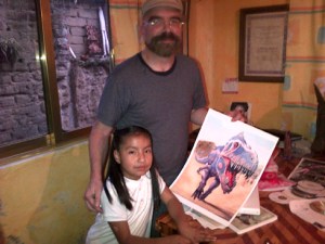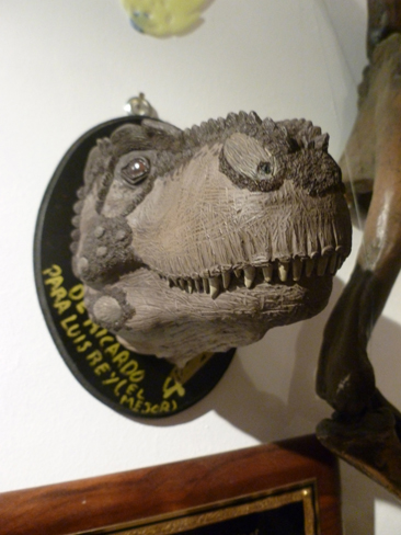 The after hours meeting brought a lot of lively discussions and I was also able to meet Mexican paleoartists like Hector Munive and we has a general exchange of gifts, signatures and autographs. I had to sign a very well used Random House encyclopaedia! Here’s one of my prizes, thanks to Ricardo Servin Pichardo for his wonderful Daspletosaurus head (proudly hanging now on my studio wall.