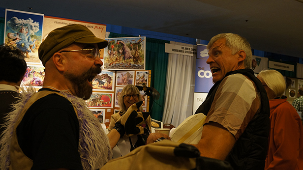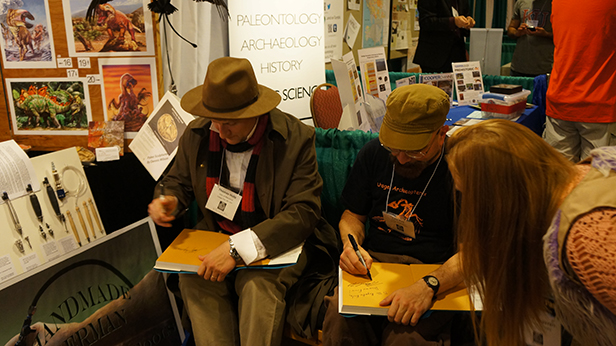 Needless to say the superstars of PaleoArt were present all over the meeting… here I am with the legendary William Stout (who traded me some of his new magnificent -signed- books for a copy of the new Golden Book… including even a book on his favourite Blues Legends (a labout of love in his own words)! And the also remarkable Mauricio Anton from Spain…the indisputable modern master of prehistoric mammal illustration!