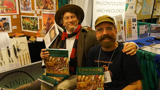 Scott Hartman was a prominent presence giving me some anatomical advice as usual …Darren Naish had come from England and I forced him (very reluctantly, you can see his displeasure) to endorse the Big Golden Book!