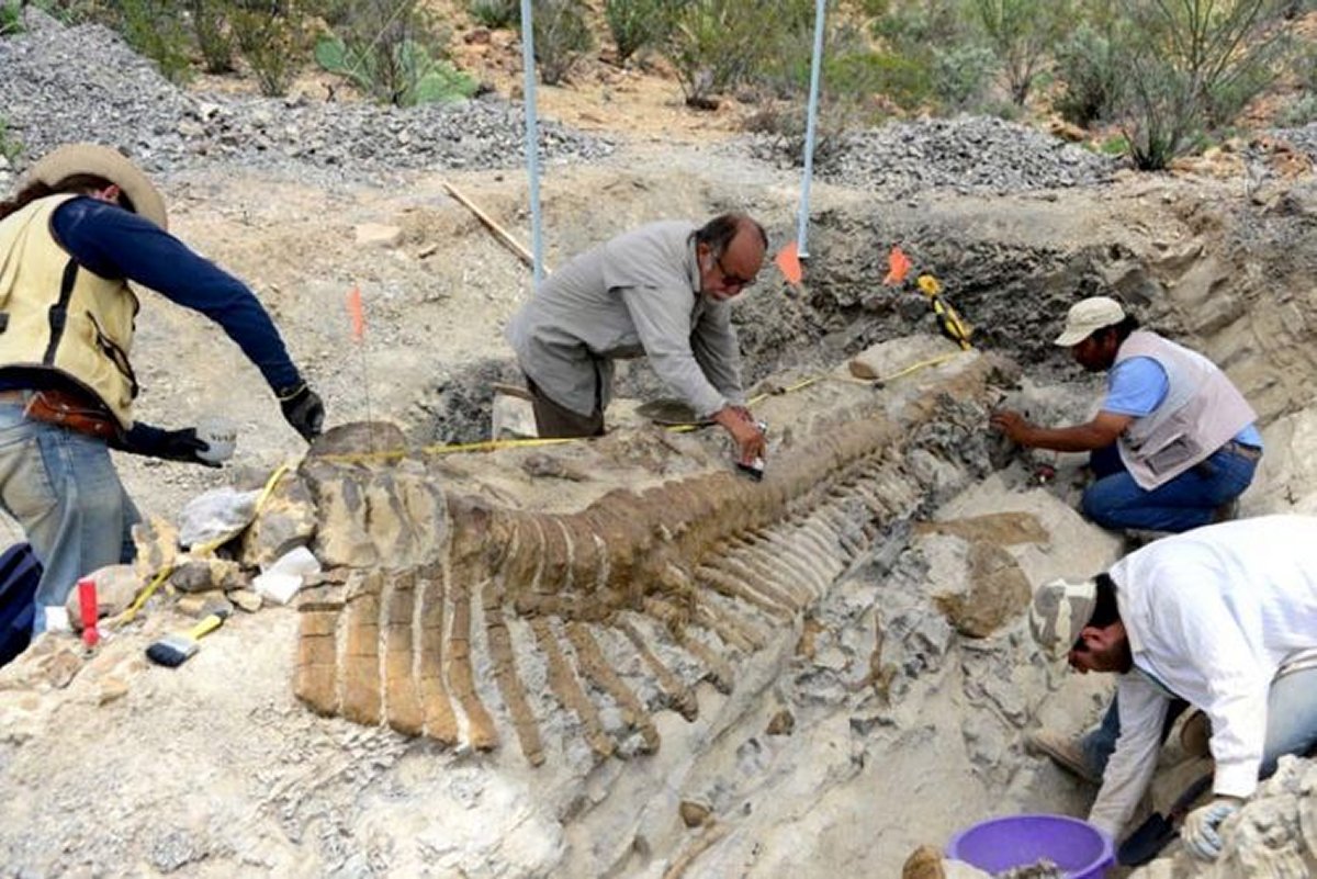 His team discovery of a rather massive almost complete hadrosaur in Saltillo was just one of many rewards in his career… look at him with that that beautifully preserved Velafrons tail!