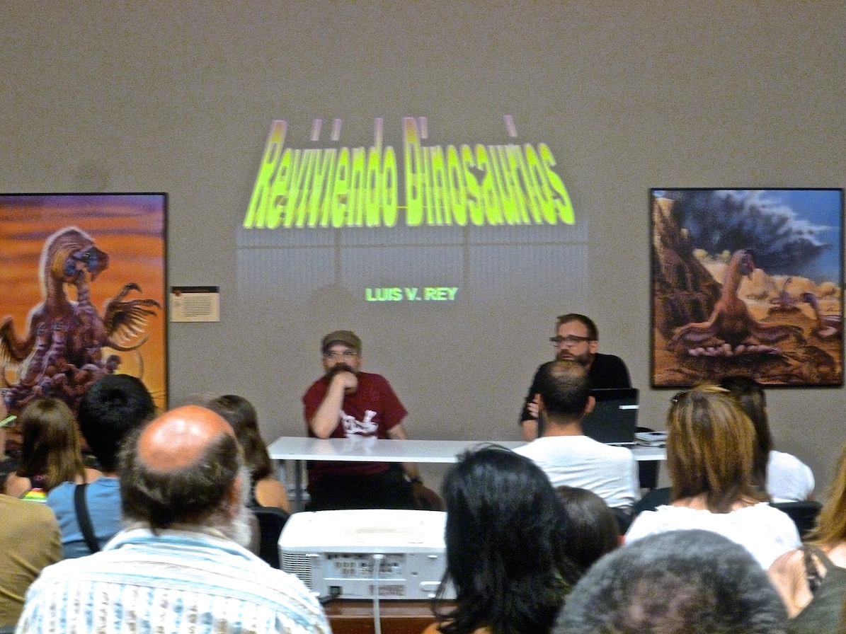 I was really looking forward to repeat my experience in Asturias with the talk “Bringing Dinosaurs Back To Life” (here known as “Reviviendo Dinosaurios”). The museum is not massive (in fact now is entirely dedicated to Hatching The Past), so we had to give the talk in one of the exhibition halls… more than sixty people crammed the space and it was quite a success! The people were attentive and responsive… hopefully I have changed the mind of more than one about the old image of dinosaurs.Here is the introduction by Pere Figuerola
