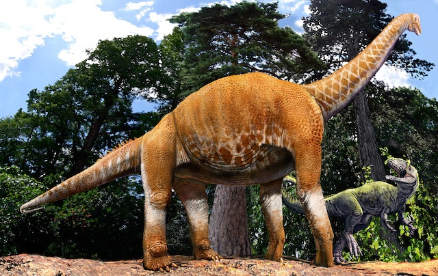 Allosaurus admiring The Impossible Meal… Giraffatitan brancai.