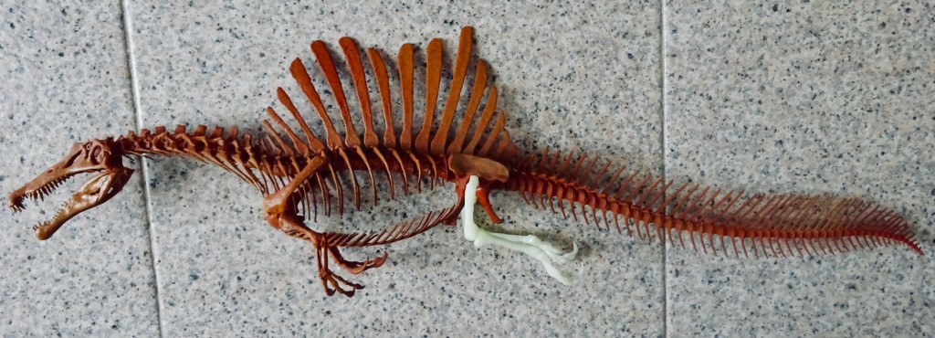 When it arrived, it was indeed an exquisite replica of a modern Spinosaurus skeleton… only there was a problem. I noted that the proportion of the legs were not based on the paper by Sereno, Ibrahim et al… but it was a perfect source to look at Spinosaurus from what anyone would consider the new “Ideal” …the skeleton was in fully fledged aquatic mode and the legs size were “perfect”… only that the perfection was for an ideal model that is still not verified by the evidence…!