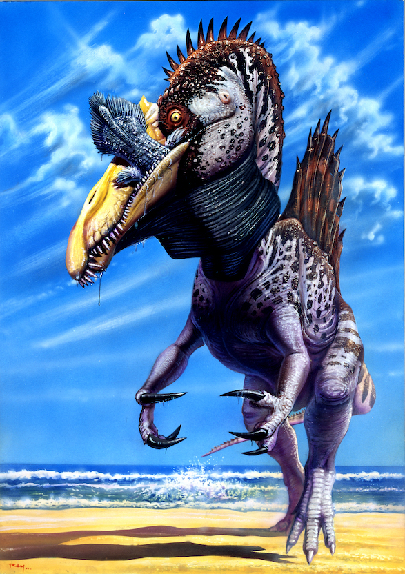 Lately, this blog is in danger of becoming an obsessive fan club of the Spinosaurus saga, but I couldn’t resist the temptation of finally doing a water-bound restoration of our favourite fisher kings… I understand that the paleo-art market may be saturated of images of him doing what he did best, but… political scourges, lock-downs , coronaviruses and above all, an overall horrid 2020 won’t stop any paloartistic passion for long!