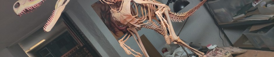Here you can see the comparison between the mounted skeleton and the old McGrady/Rey fleshed out mode, that I always thought had the ideal proportions for a life-sized Velociraptor.. However, the skeleton is bigger than the model and the proportions are also quite dissimilar. Arms and tail are smaller, the skull is bigger and legs are longer. What it means to have more than 20 years of difference between them. I still find that the skeleton is much bigger than most Velociraptor fossils I know in any case… it may be a different species.. I also have a partial Gaston cast that shows definitively a smaller animal… I suppose we should give a critical appraisal of this skeleton and see what is the source … I suspect ithe proportions are taken from Scott Hartman’s new reconstructions…