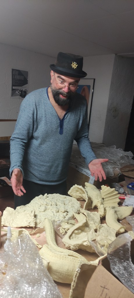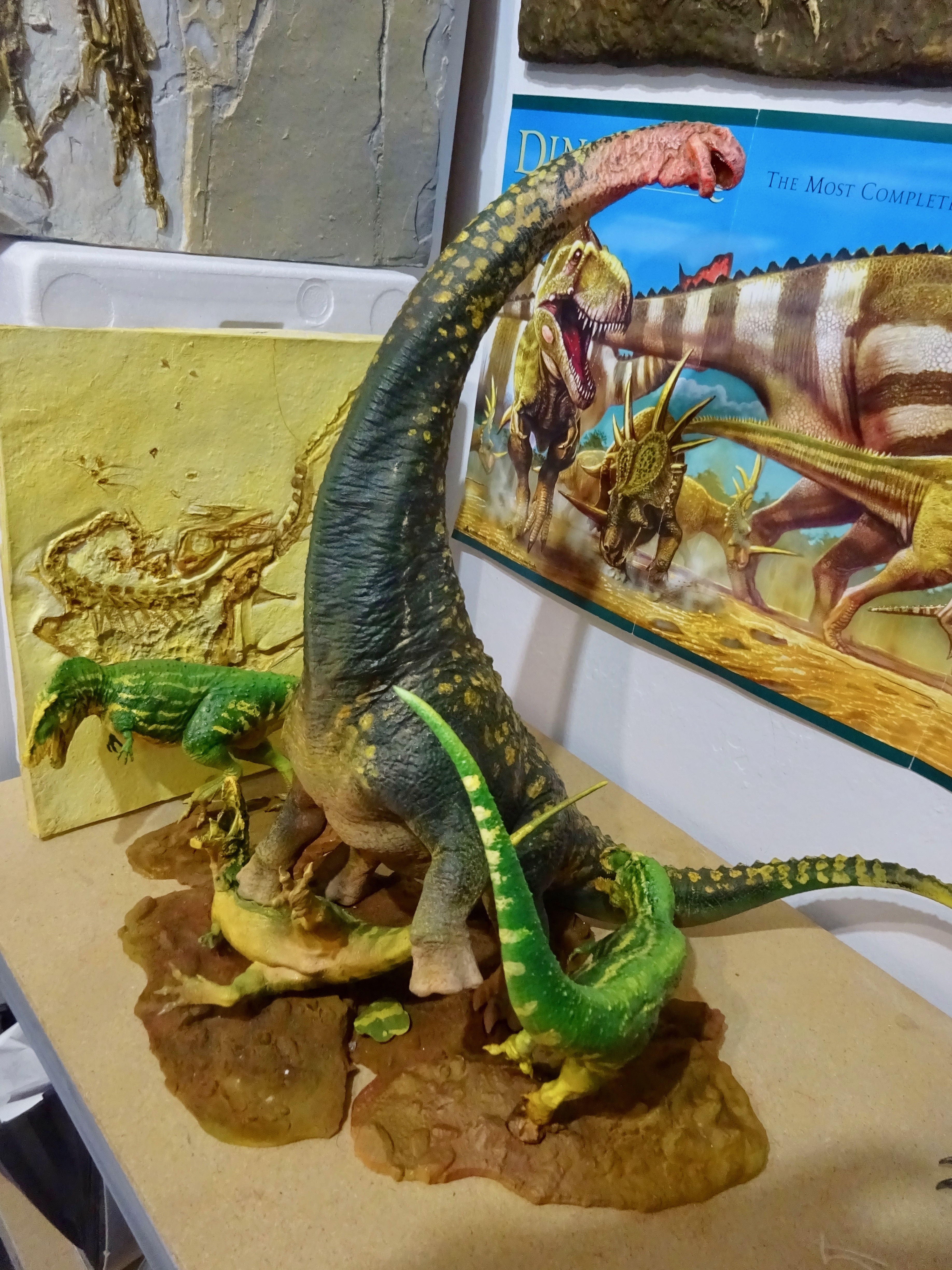 He never expected to see a titanosaur with that palette and much less the Acrocanthosaurus and Tenontosaurus pair… I enquired about the 1/20 version of the Argentinosaurus but he told me that would take the animal to be one meter long… and the work is normally in solid resin… just imagine!