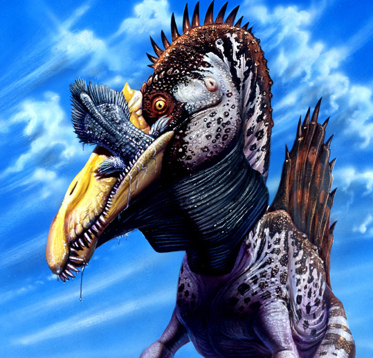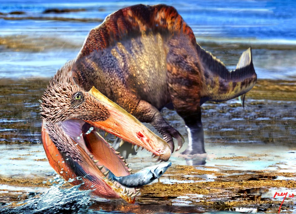 Excellent work yet again; and the best part: tis decent and rooted in natural history- as well as scientifically accurate, but clearly spinosaurs were not confined to the southern continental regions, but were all over the globe, including North America, for in the same time there were a number of spinosaurs in the northern hemisphere, yes, including Acrocanthosaurus.