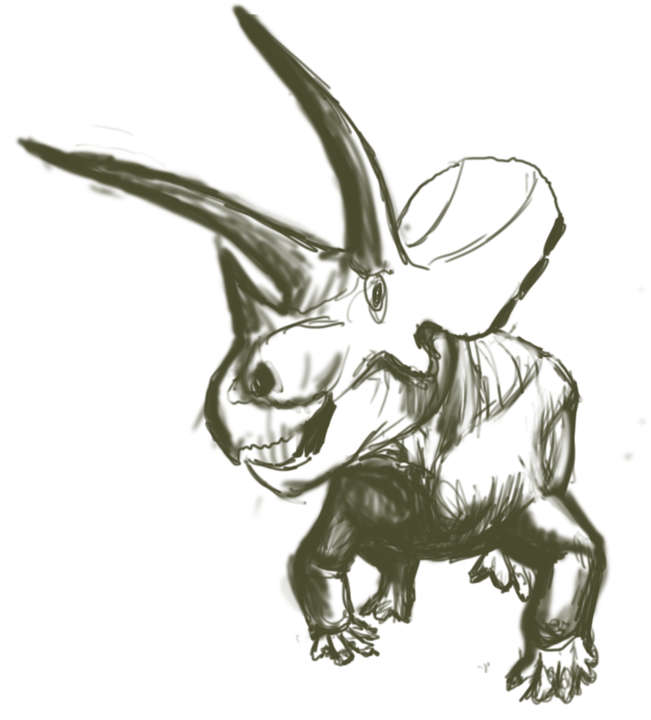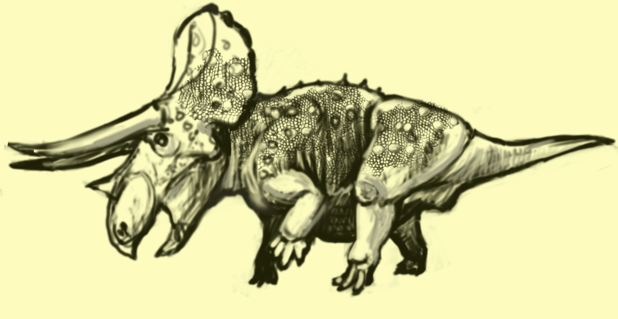 This might be the case only for the bigger headed ceratopsians, but still it is intriguing. So first thing I did was start doodling a sketch for each ceratopsian and finish them in colour accordingly.