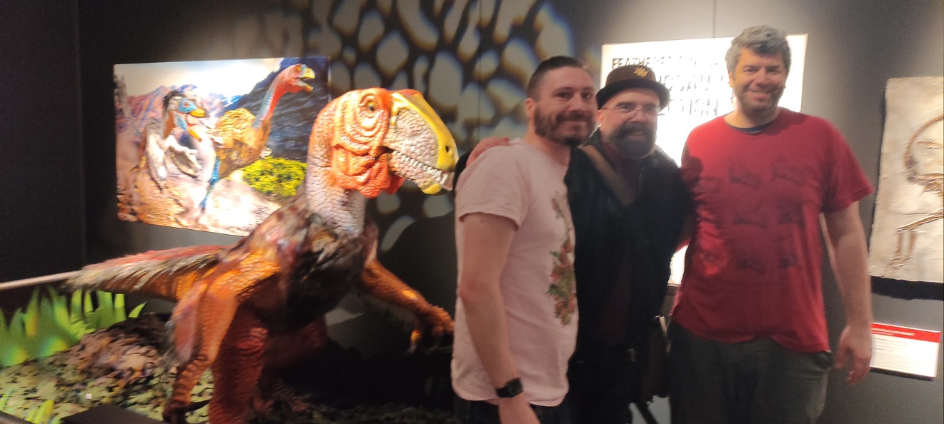 But this is not just an artwork showcase exhibition… this is party time for all dinosaur lovers! And yes, the first day we had Dave Hone and partner with James Pascoe and his gang of Dino nerds, just arriving from visiting Crystal Palace’s restored dinosaurs. appeared on the scene!… and also Janet Smith was there . I’m immensely grateful for their support… Carmen and Patricia were also there… and many more.